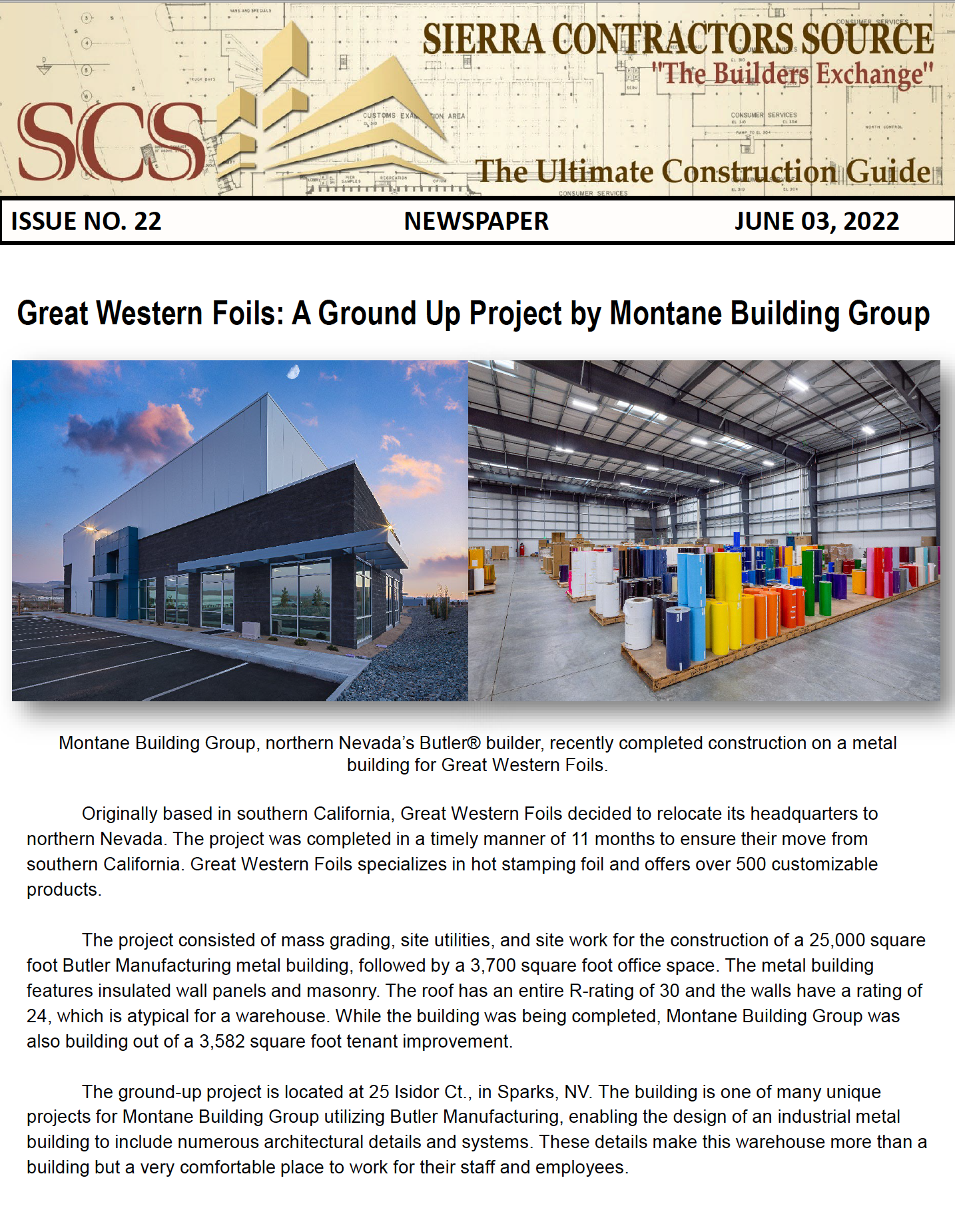 Montane Building Group Announces Ground Breaking of Sage Ridge School Student Activity Center (Reno, NV)- Montane Building Group announced they…